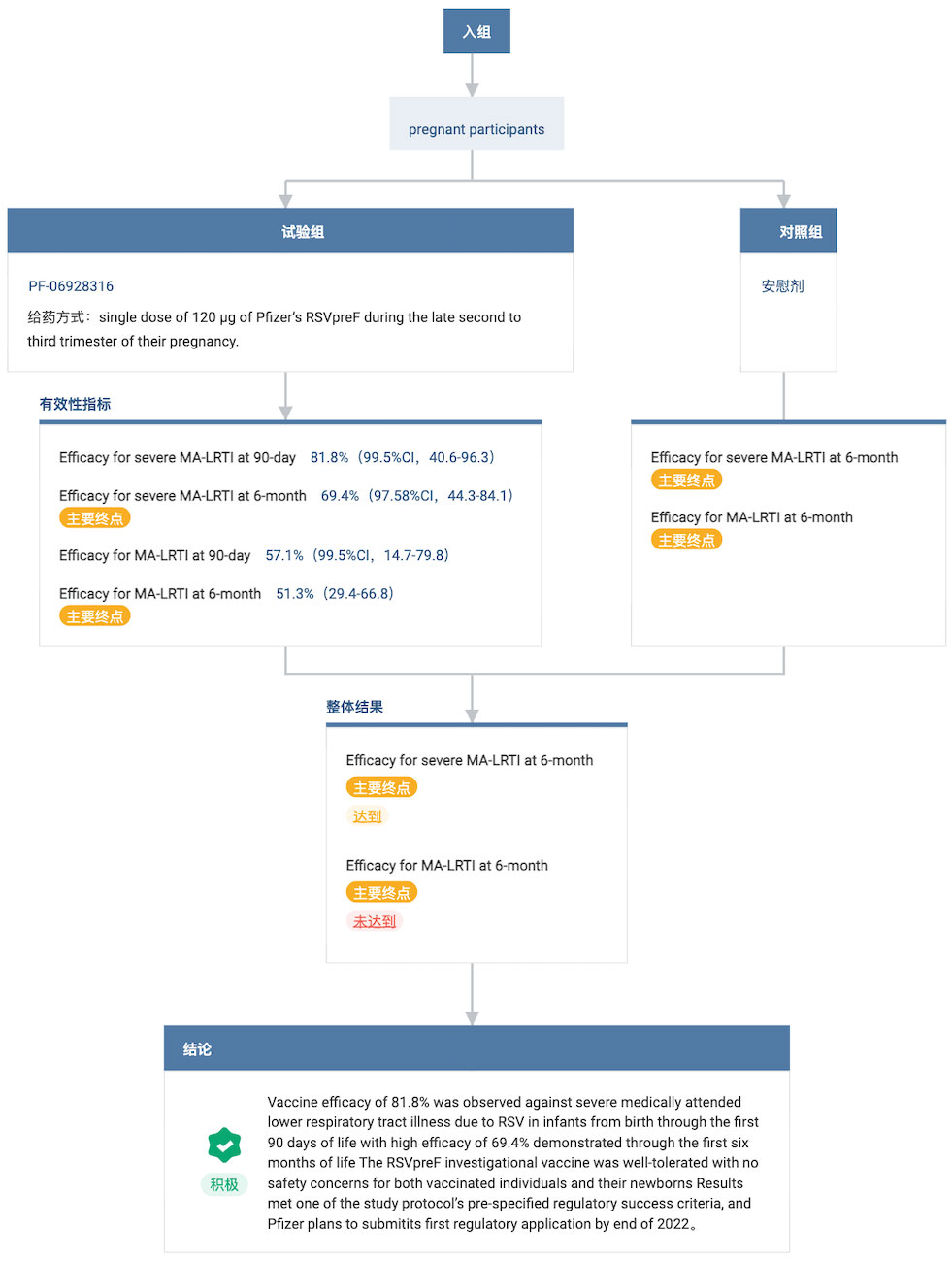 根据辉瑞此前公布的 Ⅲ 期临床数据,孕妇接种 Abrysvo 后,婴儿在出生后 90 天和 180 天疫苗对 RSV 引起的严重下呼吸道疾病的保护效力分别为 81.8%、69.4%,6 个月随访期的效力为 69.4%。安全性方面,疫苗耐受性良好,在接种疫苗的孕妇及其新生儿中均未见安全性问题。整体严重不良事件(SAEs)比例为 4.2%。