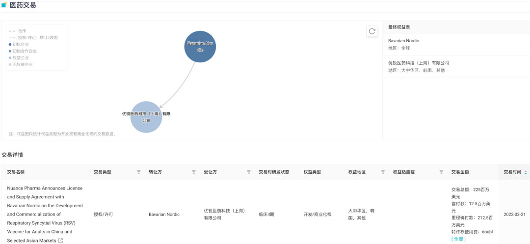 2022 年,优锐医药就曾以 2.25 亿美元的总交易额向丹麦公司 Bavarian Nordic 引进 RSV 疫苗产品 MVA-BN RSV,而且在中国获批 III 期临床试验时还提振了信心。