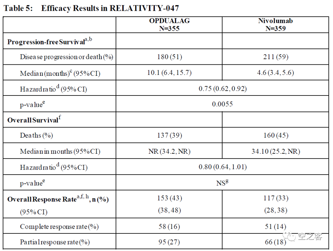 当然在最终OS完整数据出炉之前我们只能靠现有证据和横向纸面对比来进行猜测,让我最直接能想到的对标就是两个免疫检查点抑制剂的品种。一个是前些年涉险过关的LAG-3单抗Relatlimab,在治疗黑色素瘤的三期临床中,Rela+Nivo联用与Nivolumab单药对照,PFS对比为10.1 vs 4.6个月(HR=0.75 [0.62, 0.92],p=0.0055),OS数据同样未成熟(HR=0.80 [0.64, 1.01])。Relatlimab最终获批但商业化空间明显受限,人家虽然也顶着一个有点擦边的OS数据、但好歹PFS关是有惊无险的闯过去了。