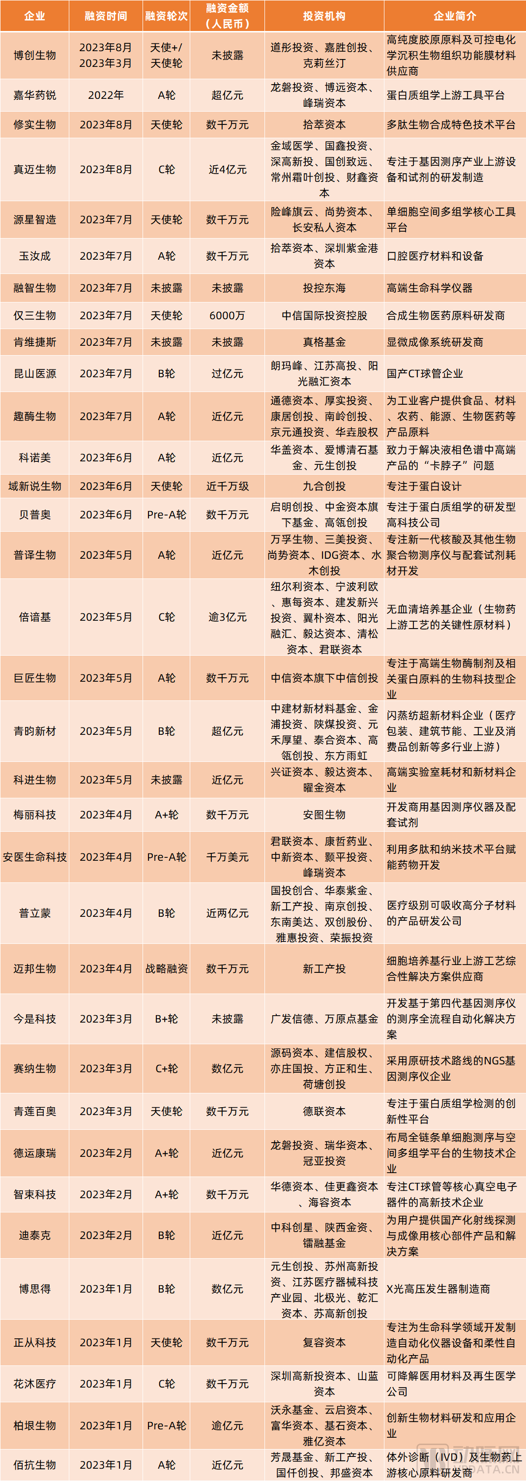 (2023上半年部分医疗行业上游企业融资情况)