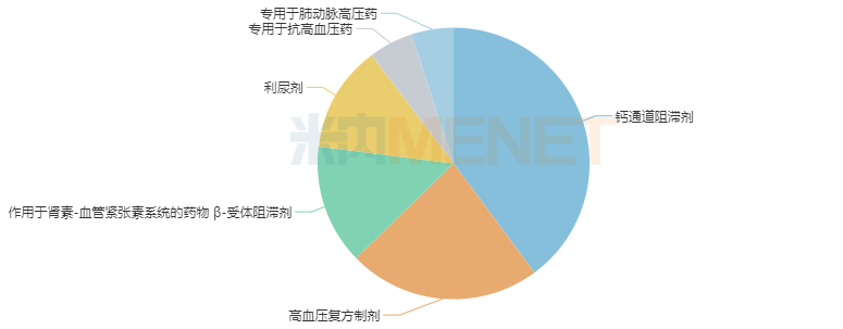 从细分类别上看,钙通道阻滞剂(CCB)作为临床常用的经典老药,以接近40%的市场份额位列第一;位列第二的高血压复方制剂销售额超过110亿元,市场份额超过20%;作用于肾素-血管紧张素系统的药物位列第三,受集采重创市场持续萎缩,2020-2022年分别下滑25.45%、26.56%、24.60%。此外,专用于肺动脉高压药大涨36.39%,利尿剂、专用于抗高血压药均涨逾10%。