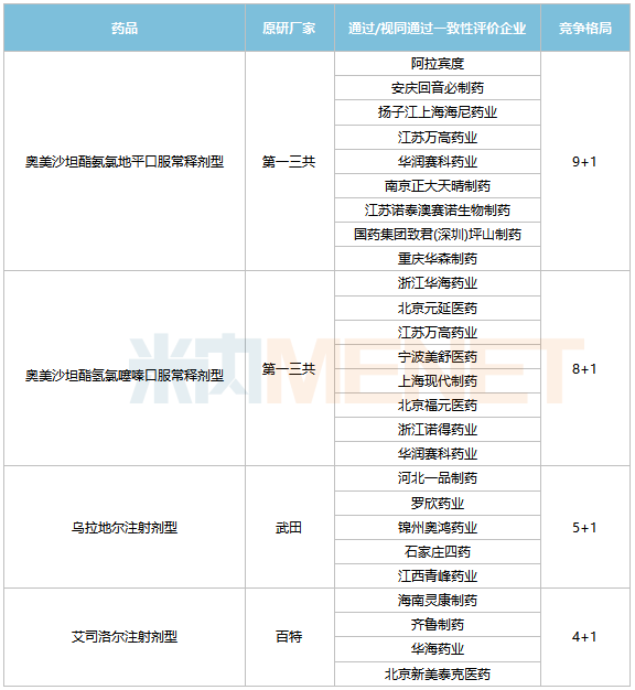 从过评企业上看,华润赛科药业、国药现代、江苏万高药业均有2个品种在列,扬子江药业、华海药业、南京正大天晴、齐鲁制药等亦有产品涉及。