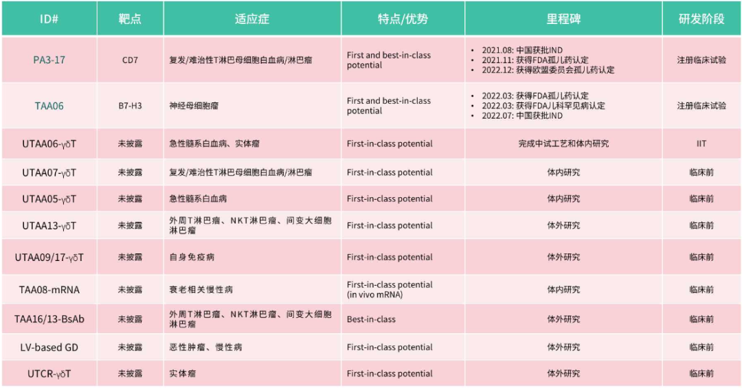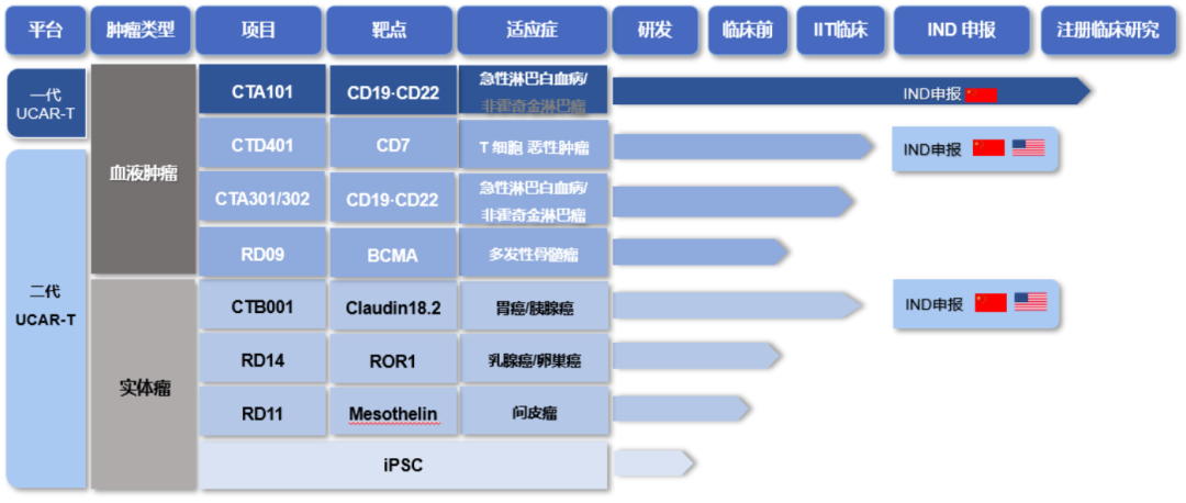 其已于2022年3月获批进入临床,用于治疗成人r/r B-ALL,是国内首个基于CRISPR基因编辑技术的免疫细胞治疗产品,也是国内第一个UCAR-T创新药。此前公布的IIT数据显示:在6例既往经过重度治疗的患者中,CR率为83.3%,2例患者获得长期缓解,整体安全性良好。