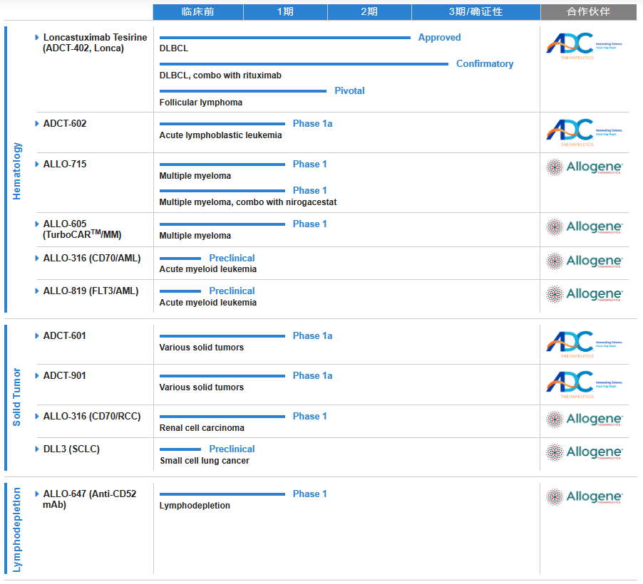 经授权安诺瓴路拥有其靶向BCMA、CD70、FLT3和DLL3四款通用型CAR-T细胞治疗在研产品在大中华地区、韩国和新加坡的独家开发、生产和商业化权利,用于治疗多发性骨髓瘤、急性髓细胞性白血病等血液性肿瘤和肾细胞癌、小细胞肺癌等实体肿瘤。2022年10月,安诺瓴路的普适型细胞药品转化生产平台正式建成并投入运营。