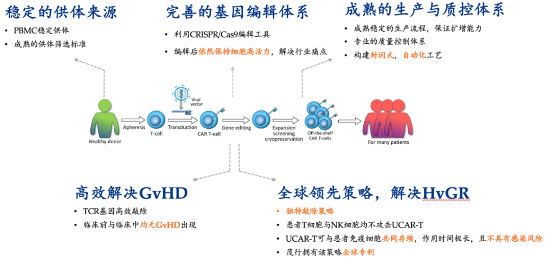 茂行生物成立于2017年,是一家临床阶段的细胞疗法开发企业。其核心技术平台基因编辑异体免疫细胞疗法采用完全自主知识产权的3.0版方案,能够解决异体免疫细胞的移植物抗宿主病风险和排异问题,延长了异体CAR-T细胞在体内的存续时间,从而发挥更好地疗效。