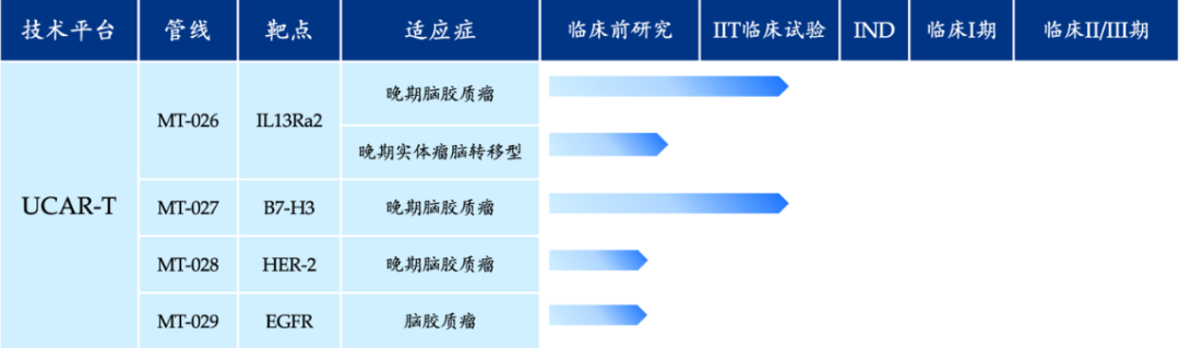 目前,官网已经公布了4款UCAR-T,适应症集中于脑胶质瘤,但所针对的靶点不同。