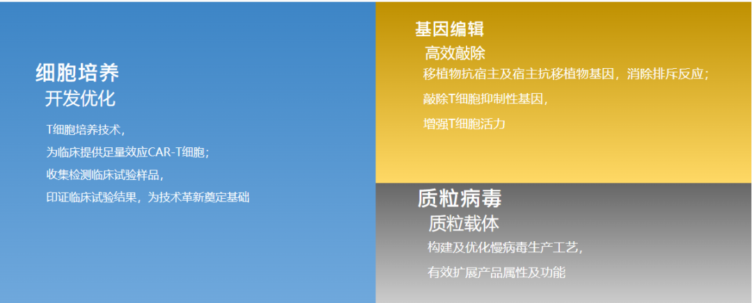 其通用型细胞平台(TyUCell®)基于基因编辑技术改造异体免疫细胞以消除免疫排斥,其产品具有成本低廉、适用范围广、生产周期短、制备工艺稳定、治疗效果好等优点。这一平台对健康供者来源的细胞经过大量扩增后可用于临床治疗,同时实现细胞产品的规模化、批量化生产,显著降低生产成本,缩短患者等待时间,提供满足临床急需的现代化细胞治疗产品。