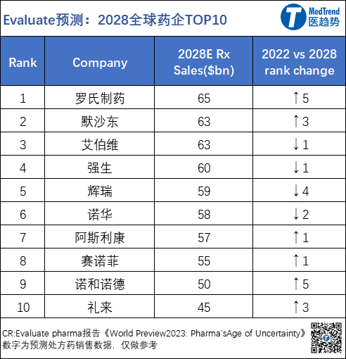 预测 2028年全球药企TOP10榜单