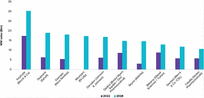 2028年最畅销的十大药物榜单