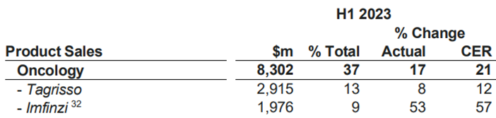 图3. Imfinzi和Imjudo销售额数据,来源:阿斯利康2023H1财报(Imfinzi32销售额包括联用的单抗Imjudo)