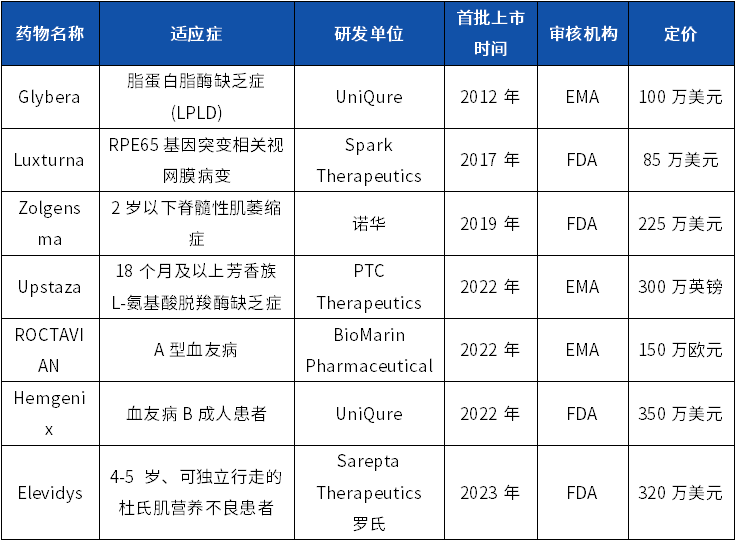 据统计,目前全球范围内获批上市的AAV基因疗法药物共7款,均针对罕见病,且定价位于百万美元级别。