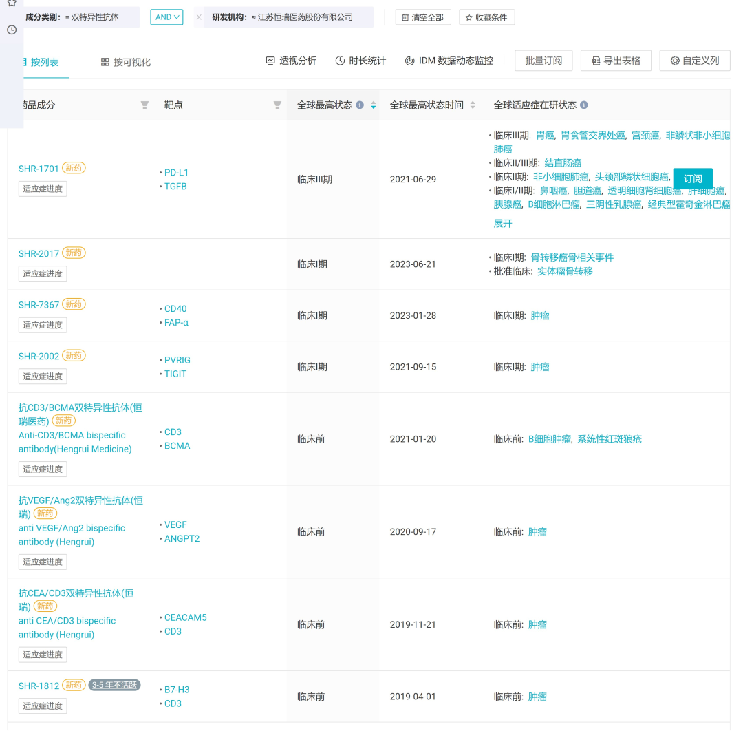 恒瑞医药已公布靶点的双抗项目