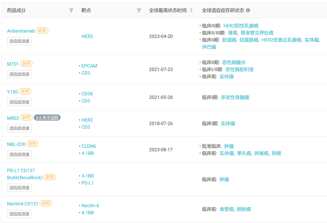 以康方生物、康宁杰瑞制药和信达生物为代表的新兴创新药企,已经凭借强劲的研发实力,率先在双抗领域打造了丰富的管线。