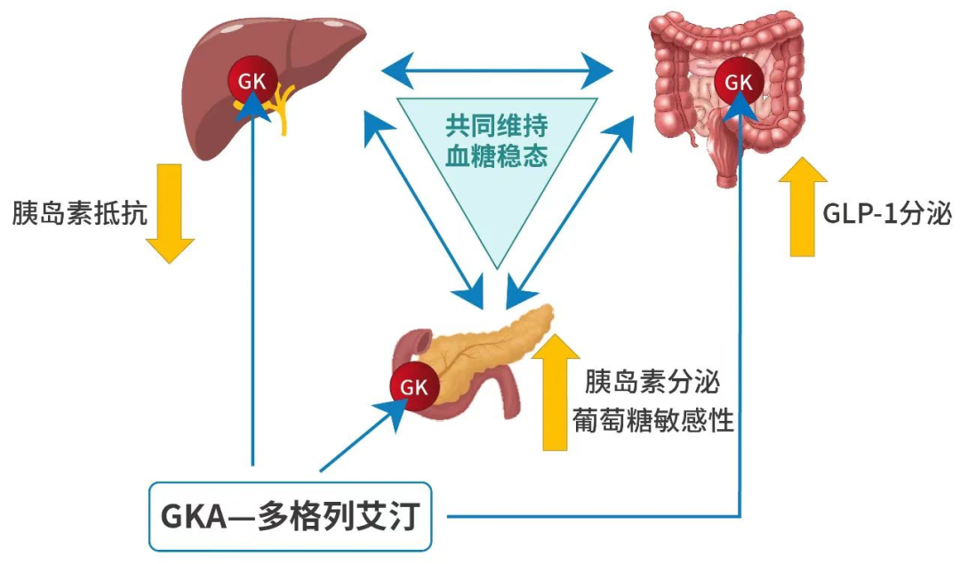多格列艾汀调节三大调糖器官的协同作用