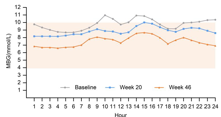 患者TIR随用药时间延长而提升,46周达83.7%