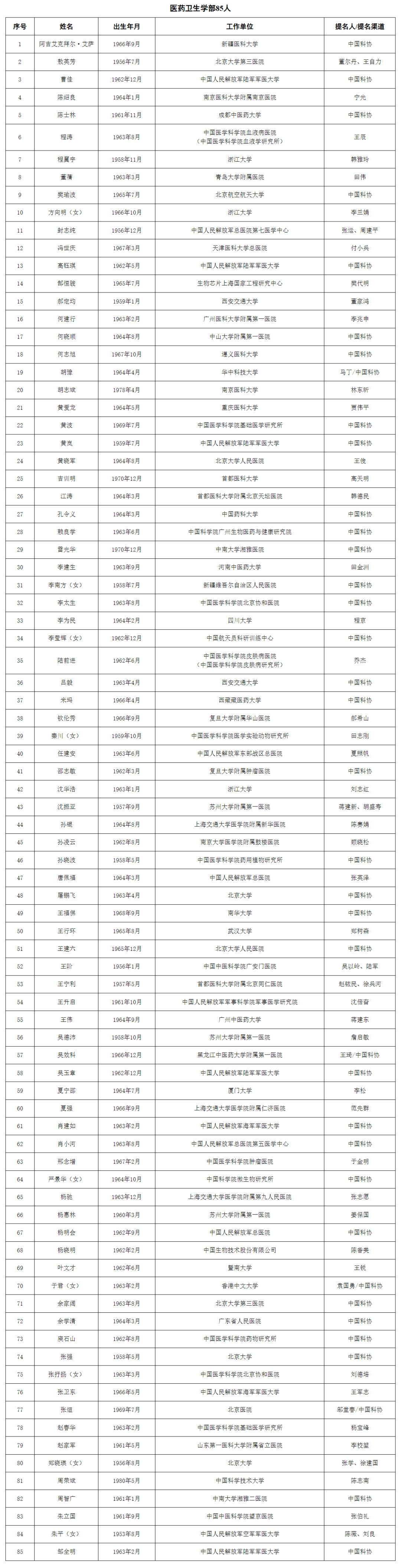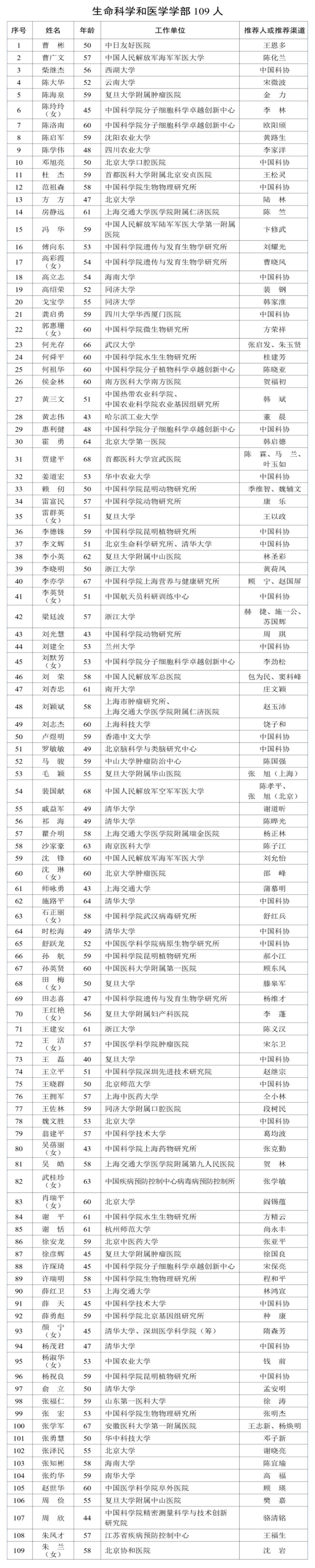 小编整理了医药卫生领域增选名单(按姓氏拼音排序),一起来看看吧~