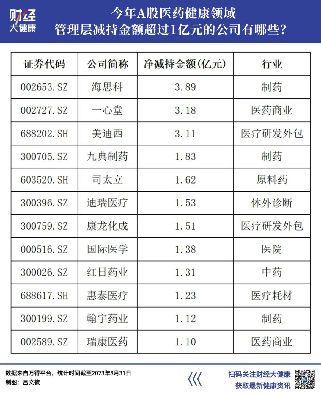 今年以来,8个月的时间里,医药行业已有至少96家企业发生过管理层减持,减持金额合计36.8亿元。