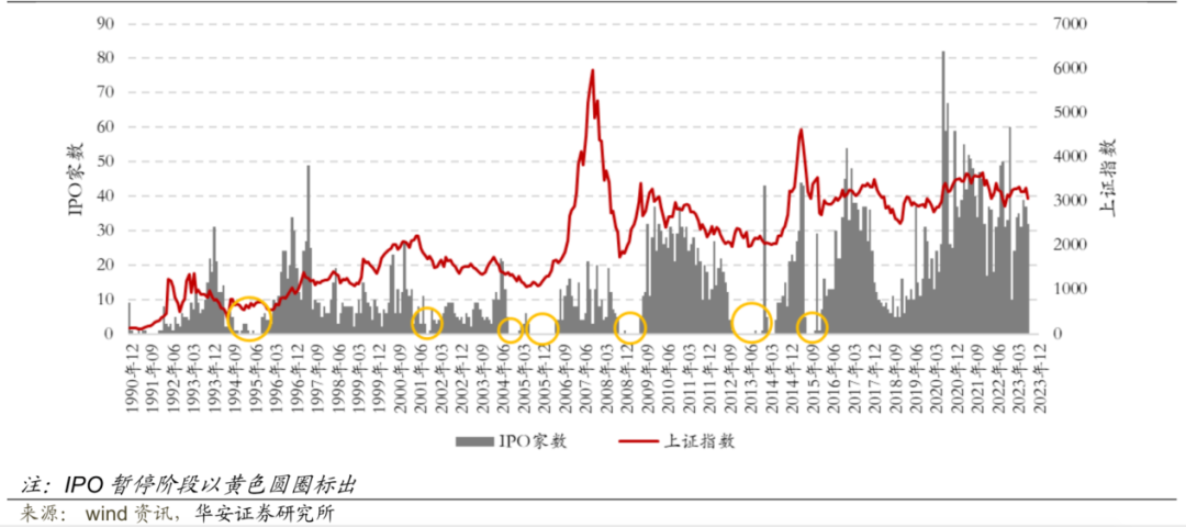 以往IPO暂停或放缓的时间段里,整体表现是: