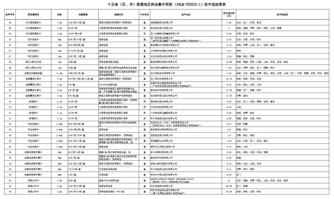 03 十九省药品联盟采购,151条拟中选结果公布