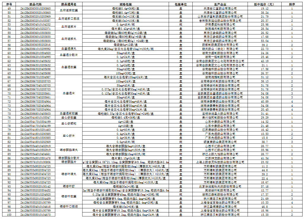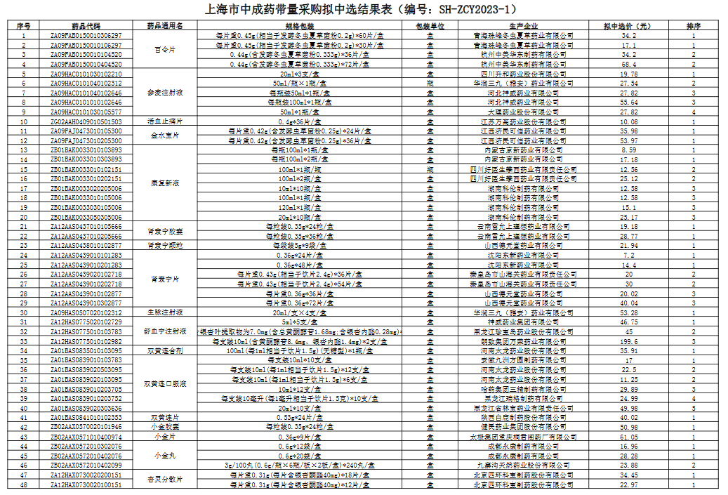 上海中成药拟中选结果