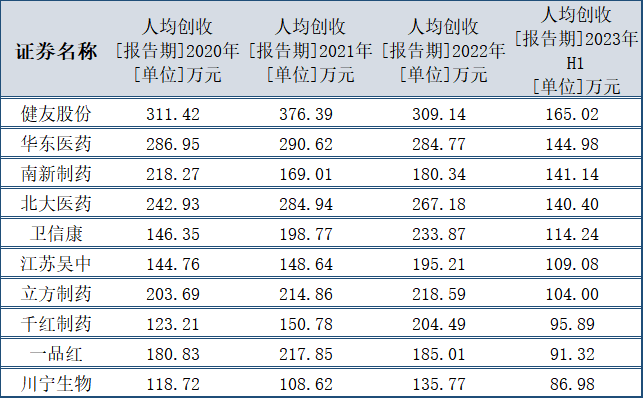 而医药工业公司呈现相反的走势。以济川药业为例,它是人均创利排名第三的公司,今年上半年实现人均创利31万元;但在人均创收排行当中,济川则排在了第7名,上半年人均创收为92万元。