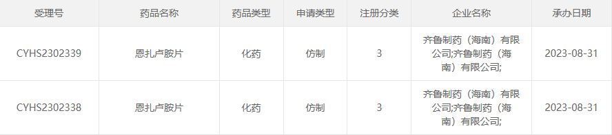 8月31日,齐鲁制药的3类仿制化药恩扎卢胺片上市申请获受理,这是首家以新注册分类报产该品种的企业。今年1月,齐鲁制药还获批生产恩扎卢胺软胶囊,为该品种第2家过评的药企。
