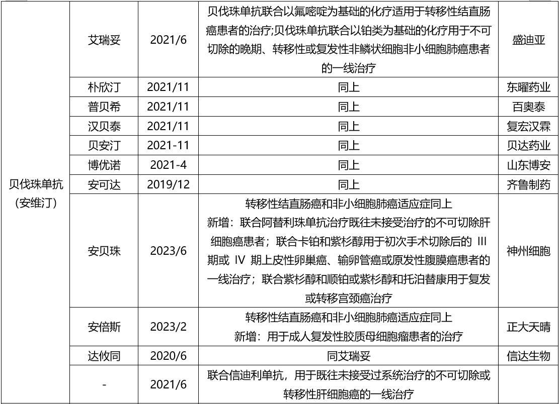 国内第一家贝伐珠单抗生物类似药为齐鲁的安可达,现国内已有10家生物类似药批准上市。