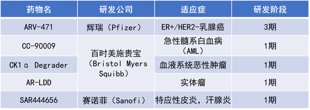 目前,2022年研发投入最多的十家药企共有4款蛋白降解疗法处于早期临床研究阶段,此外还有1款蛋白降解疗法已经在3期临床试验中进行测试。