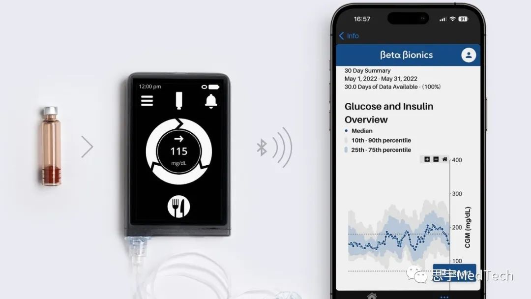 与传统的胰岛素泵不同的是,iLet仿生胰腺既不需要经常检查患者血糖水平,也不需要手动调节胰岛素剂量,还不需要用户计算碳水化合物,而是根据连续血糖监测系统(CGM)的信号,利用了一种自适应的闭环AI算法,根据用户的个性化需求,自动调节胰岛素剂量。