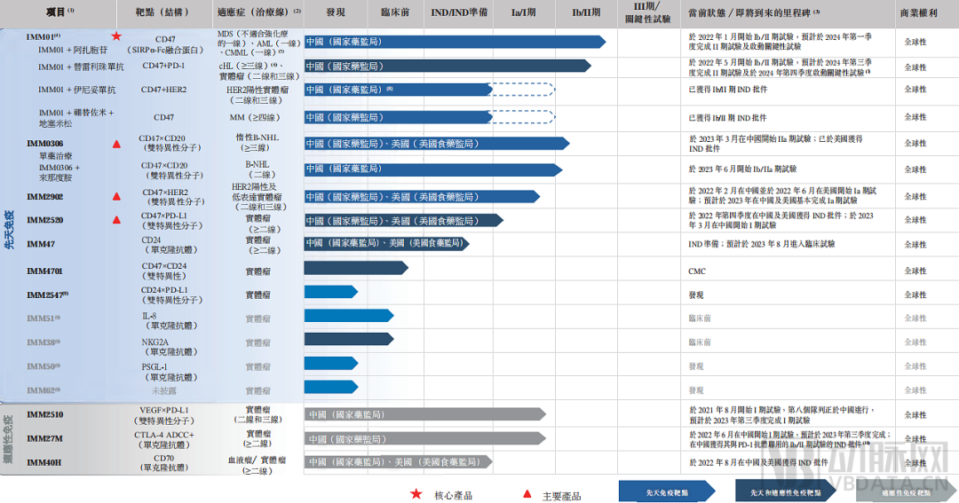 针对CD47靶点,宜明昂科进行了一系列布局,其核心产品IMM01,以及主要产品IMM0306、IMM2902、IMM2520,分别是基于CD47靶点开发的SIRPα-Fc融合蛋白,以及基于CD47靶点开发的双特异性分子。