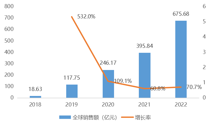 2018-2022年,司美格鲁肽全球销售额逐年上升,2022年达675.68亿元,4年复合增长率为145.4%;国内方面,2022年,司美格鲁肽在中国医院销售额就达到了17.35亿元。在减肥适应症的加持下,预计未来将保持持续增长。