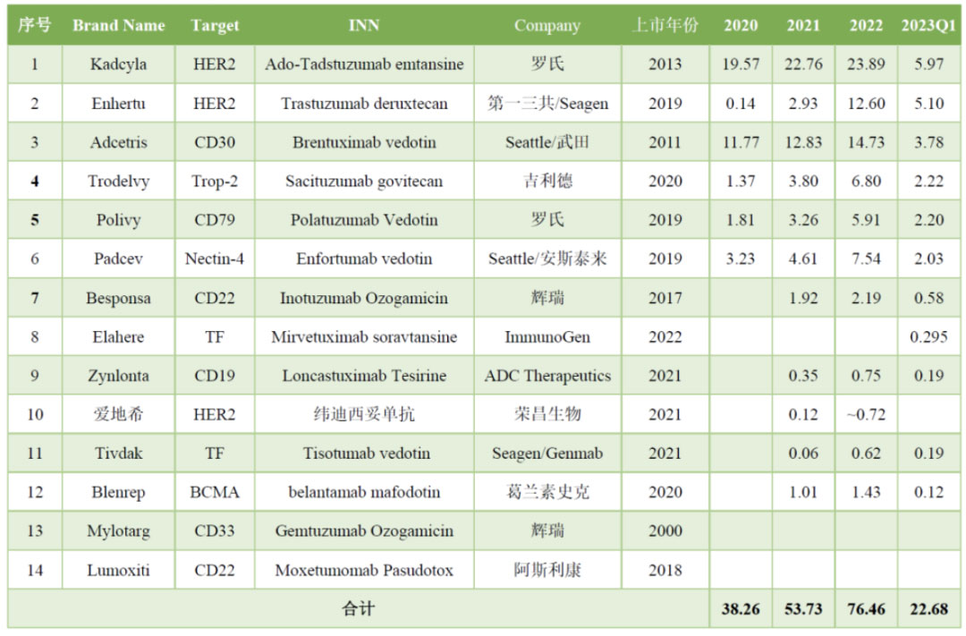 全球ADC药物销售额(医药笔记)