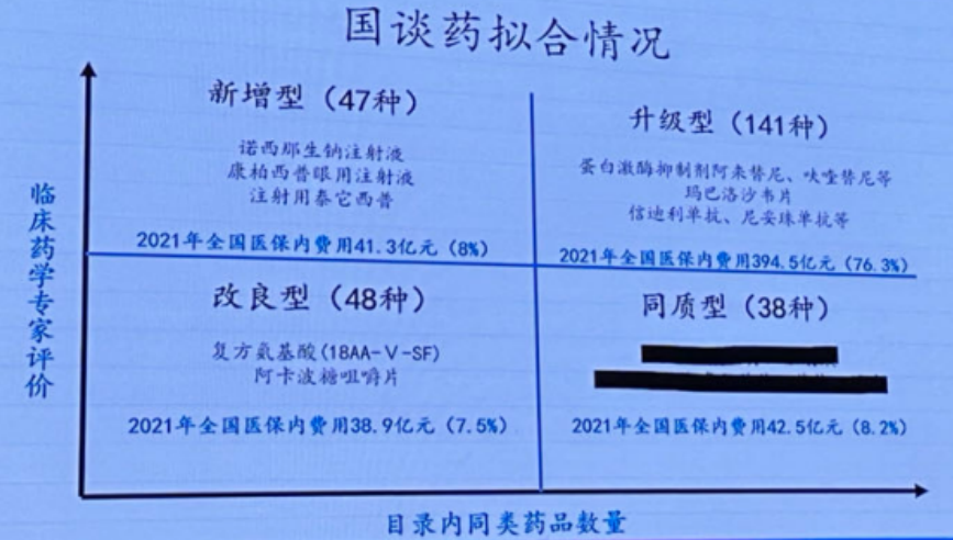 改良型(即鼓励纳入,建议实现较高性价比)48种,2021年占医保内费用7.5%;