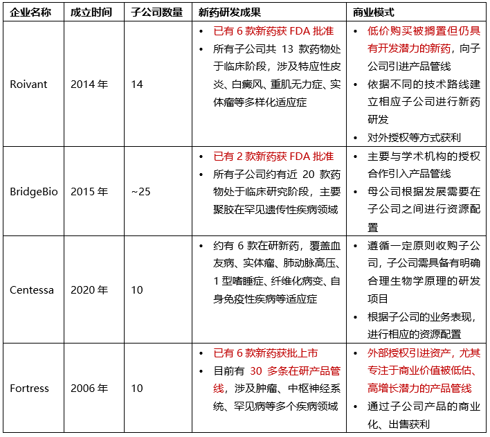 所谓Hub-and-Spoke即“中心辐射”模式,即母公司控股多家不同技术路径和疾病领域的创新药子公司,母公司提供资金筹集、投资、研发服务、制造与商业化能力等集中资源支持,子公司则专注于各自垂直领域擅长的药物管线,具有高度专业性。