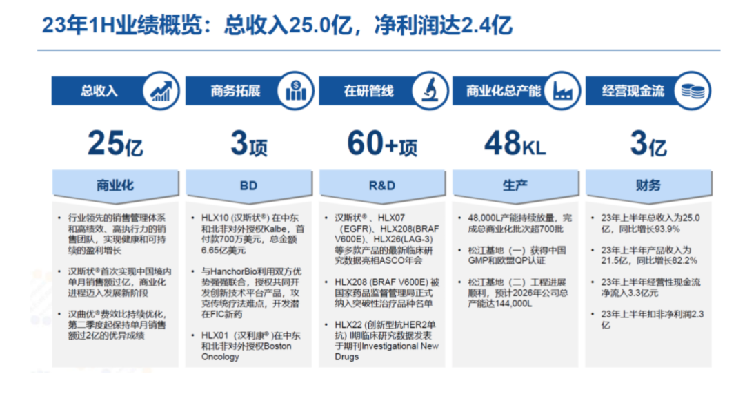 今年上半年,得益于曲妥珠单抗生物类似药汉曲优、创新药PD-1单抗汉斯状等核心商业化产品加速放量,公司营收规模继续大幅提升。