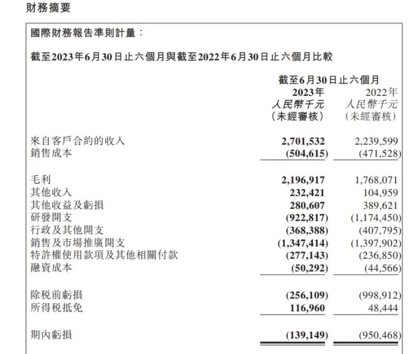 参考资料:各公司2023H1财报、官网、官微、公告、招股书
