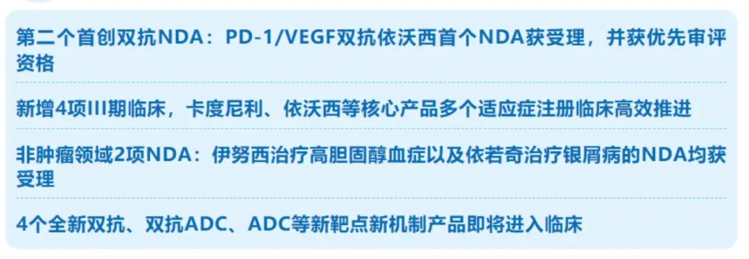 此次实现半年度盈利,一是由于其核心产品PD-1/VEGF双抗依沃西(AK112)对外授权获得约为29亿元的巨额收入;二是其创新药开坦尼(卡度尼利单抗,PD-1/CTLA-4)和安尼可(派安普利单抗,PD-1)两大产品持续放量实现销售收入增长。