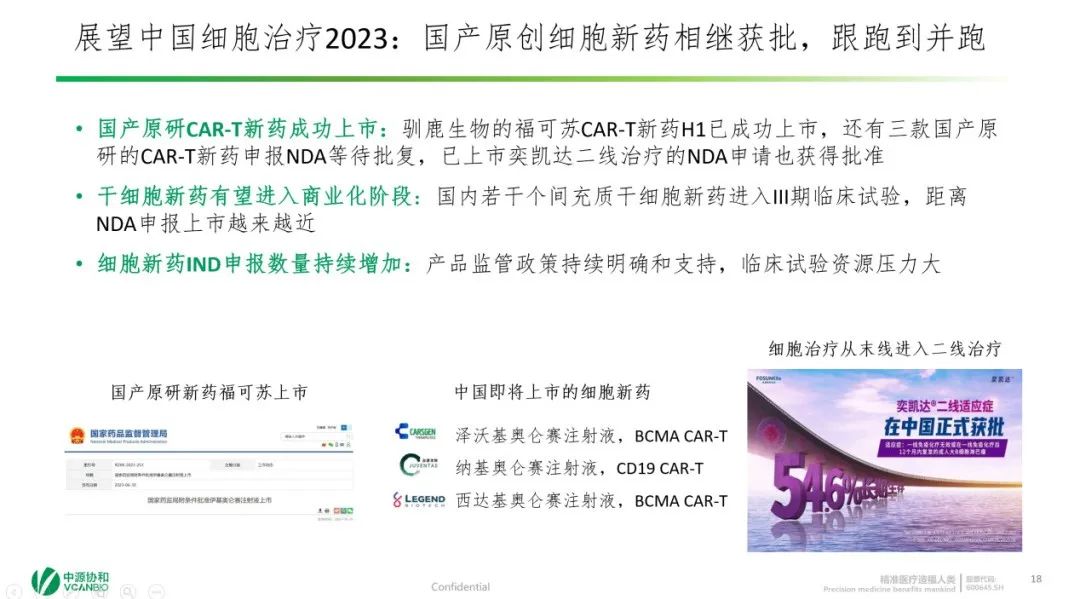 上半年我们又有一个新的靶点的CAR-T药物成功上市了,而且这是在我国首个获批上市自主原研的CAR-T新药,证明了中国人也能自己做出全球领先的细胞治疗新药。此外,我们还有三个自主原研的CAR-T产品在等待上市过程中,有望在下半年上市。再者,CAR-T治疗获批二线治疗,成功从末线治疗进入到前线,这不但可能在销售方面产生影响,更重要的是有望改写肿瘤治疗的传统模式。