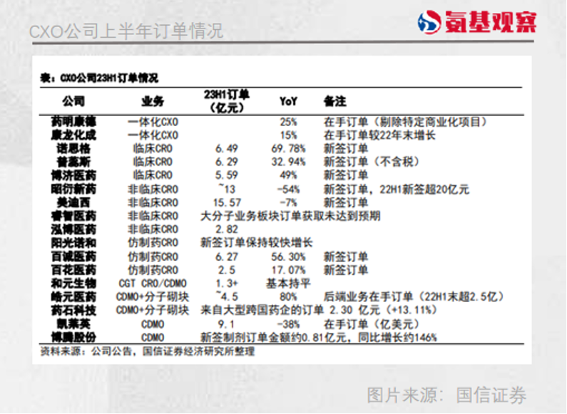 上半年,CXO板块业绩增长承载着不小的压力,不少CXO手中订单的增长开始放缓。