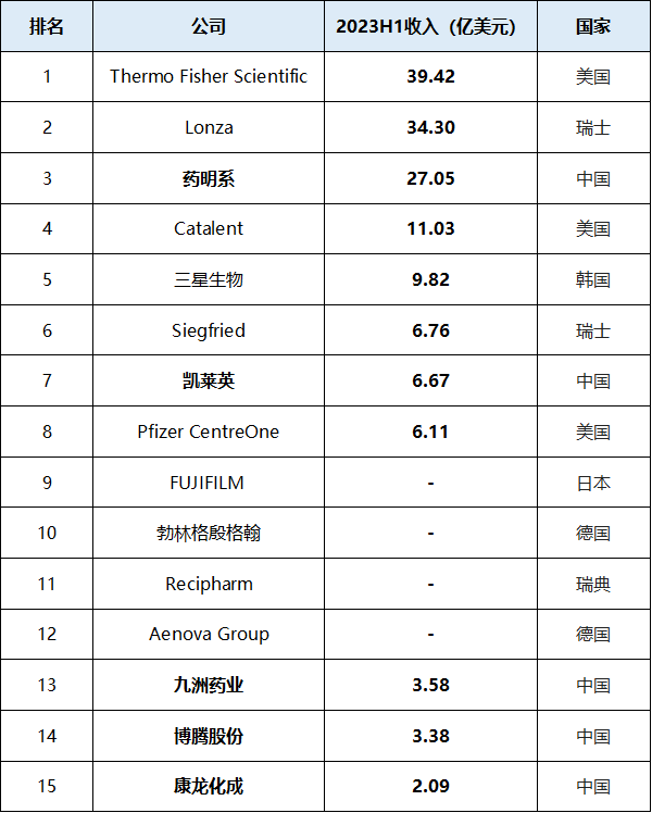 10)Recipharm和Aenova Group未披露2023年半年报。