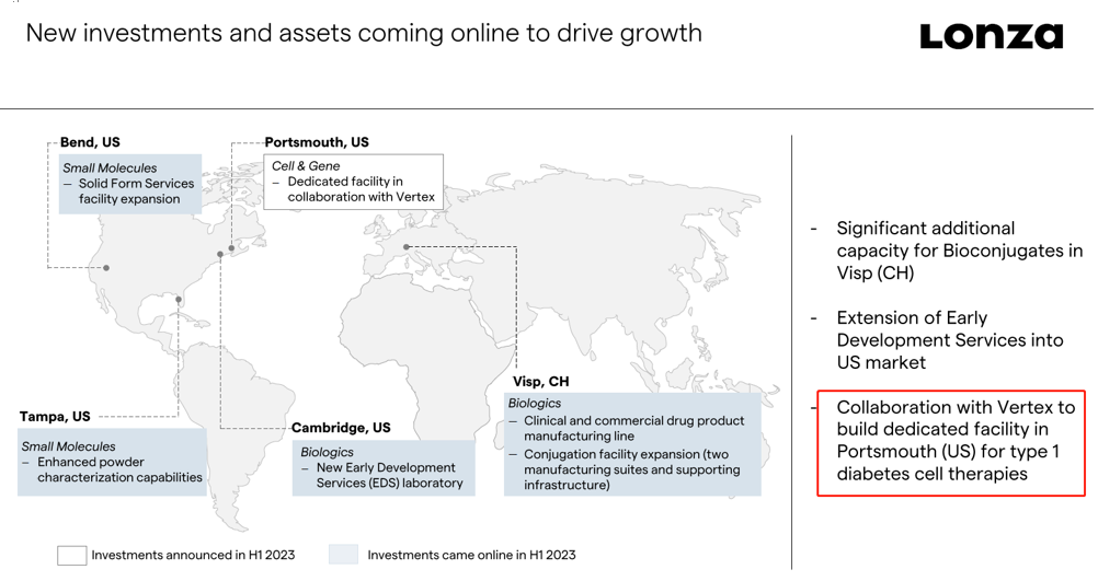 2、龙沙还与Vertex达成协议,在其朴茨茅斯(美国)工厂建设1型糖尿病细胞疗法的专用生产设施