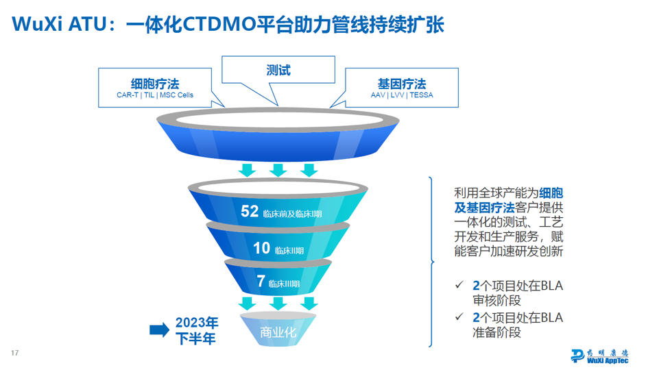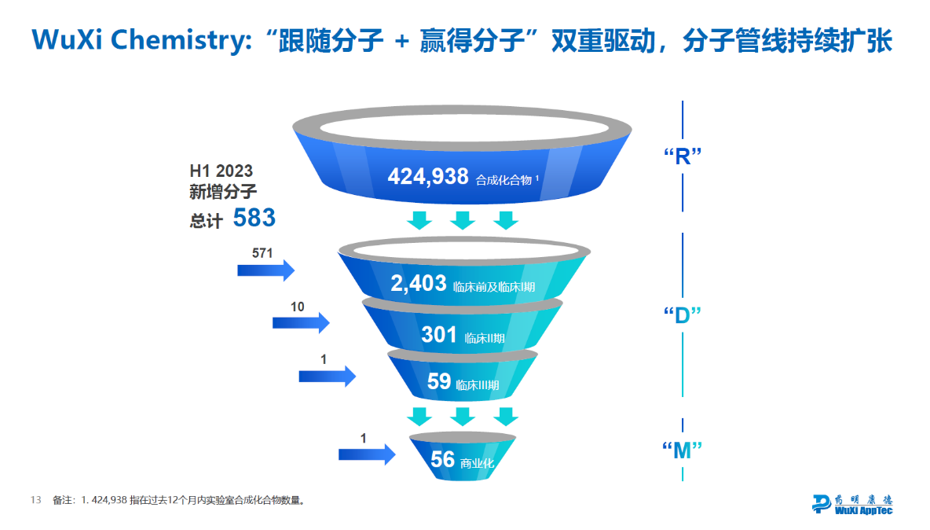 截至2023年上半年化学业务服务项目新增583个分子,总计2819个分子包括56个商业化项目,59个临床III期项目,301个临床II期项目, 2,403个临床前和临床I期项目。其中,商业化和临床III期项目合计新增8个。