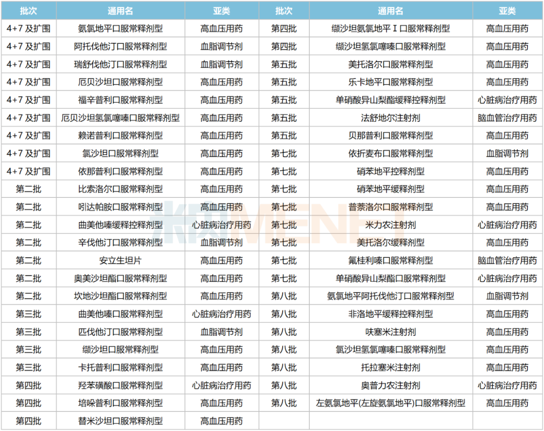 7个心脑血管系统化药全国中标(挂网)情况