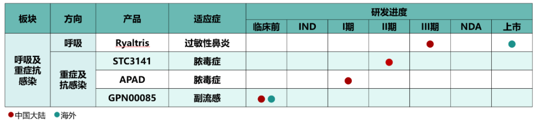 见微知著,呼吸及重症抗感染领域作为远大医药核心战略业务板块之一,Ryaltris®之外公司在该领域打造了一系列丰富的产品管线梯队。