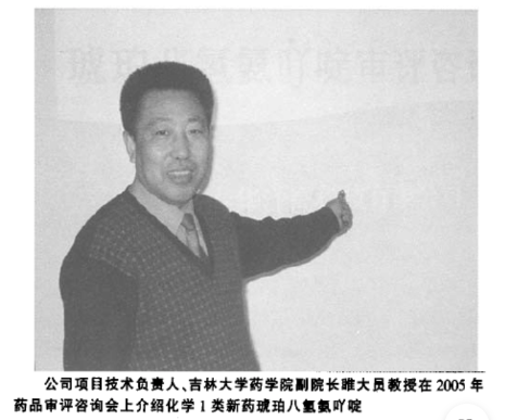 文章披露:2003年,琥珀八氢氨吖啶在长春科技局立项,先后拿到多个重点项目立项和资金支持。这款药的研发集结了一大批吉林省内、甚至国外医药界专家,吉林大学药学院时任副院长睢大员教授为该项目技术负责人,俄罗斯国家氮工业和有机合成材料研究设计院专家、新药阿米利金发明人阿·弗·乌巴德舍娃为公司首席专家。