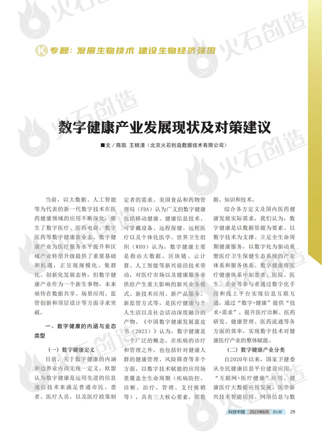 日前,火石创造参与组稿的“发展生物技术,建设生物经济强国”专题在《科技中国》杂志上刊发。