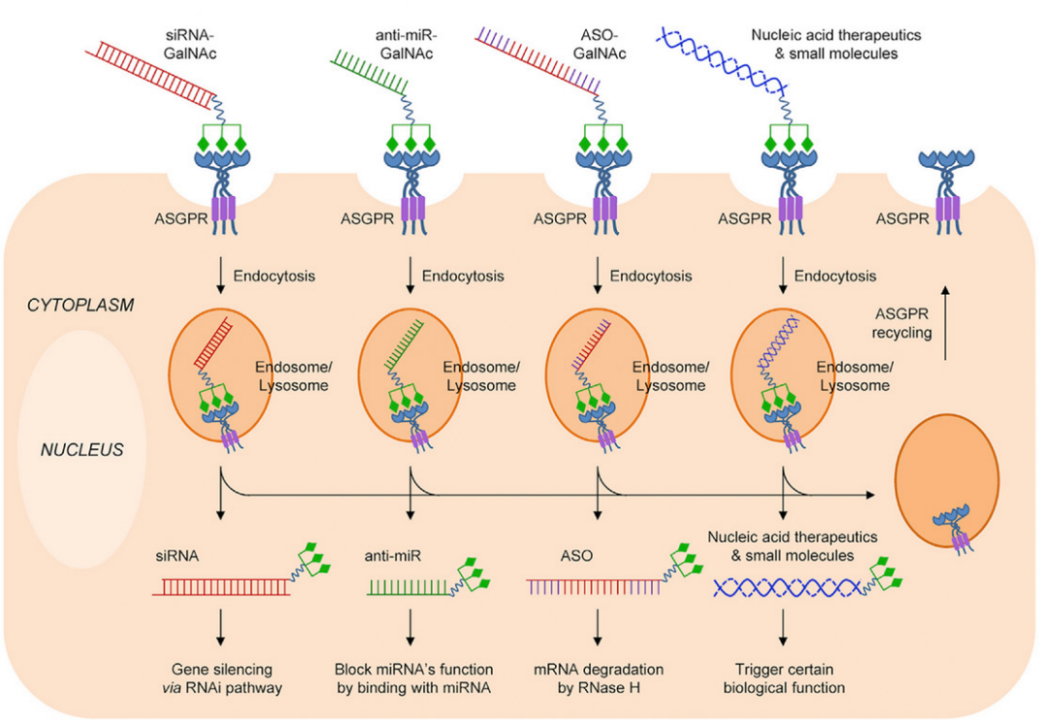 图注:GalNAc 寡核苷酸偶联递送至肝细胞
