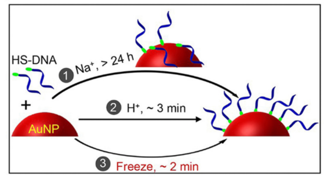 图注:通过冷冻将DNA附着在Au NPs上