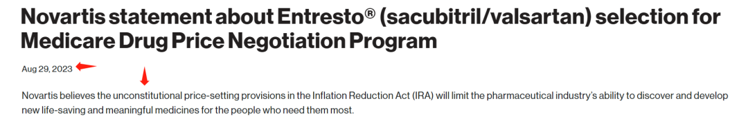 诺华于美国医保谈判名单发布后不久发出的新闻稿就非常符合这一思路,一方面对IRA提出法律层面的反对,一方面为自己的药价找补,已经通过多种手段为患者提供了补助,医保谈判反而会对药物可及性,以及后续的药物研发产生副作用。阿斯利康等药企也曾暗示,如果法案推行,在推出新药、新适应症时会下调美国市场的优先级。