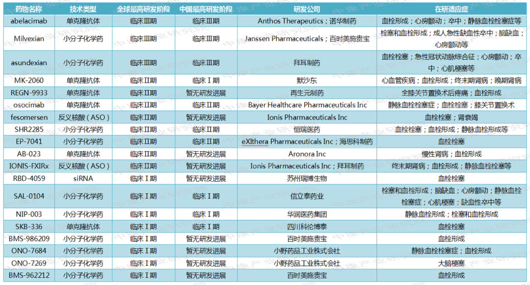 图表4:靶向XI或XIa因子的抗血栓在研药物 数据来源:公开资料,中康产业研究院整理